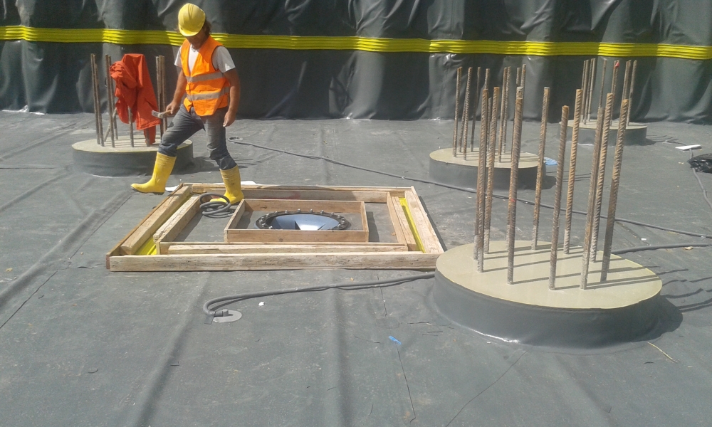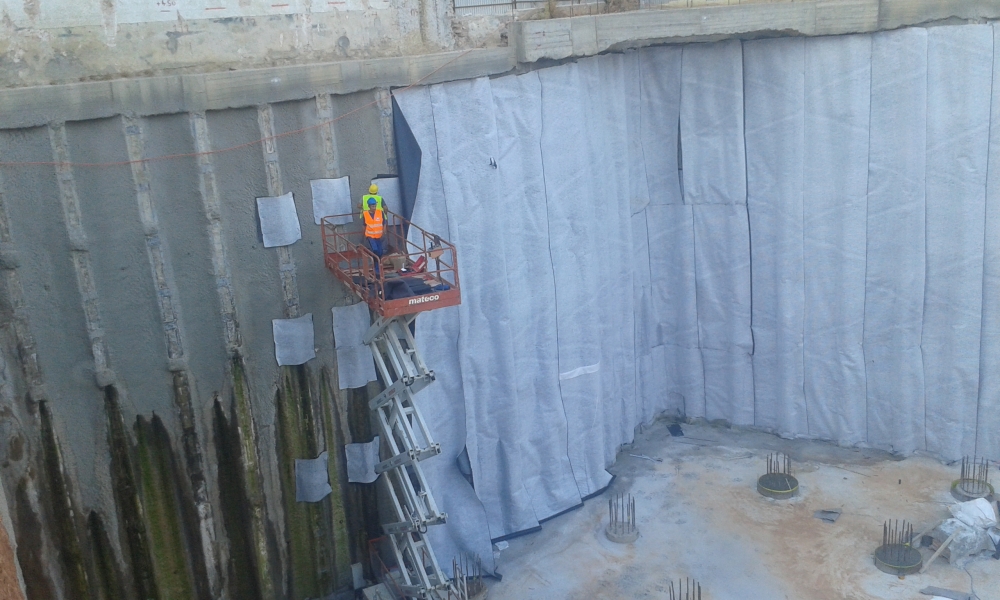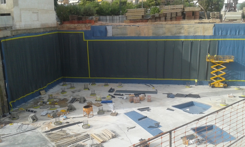 Κατασκευή στεγανολεκάνης στο έργο "Κατασκευή κτιρίου γραφείων της ΑΓΓΕΜΑΡ Α.Ε." με σύστημα διπλής μεμβράνης συνολικής επιφάνειας 11.200 m2