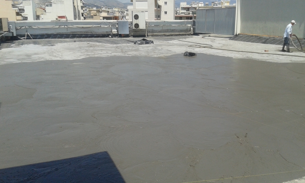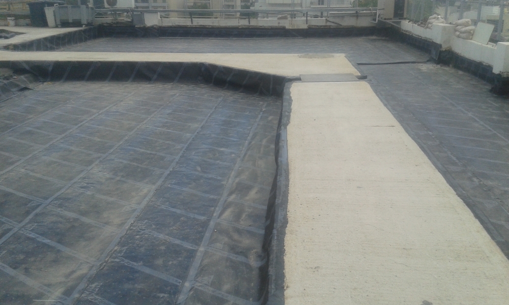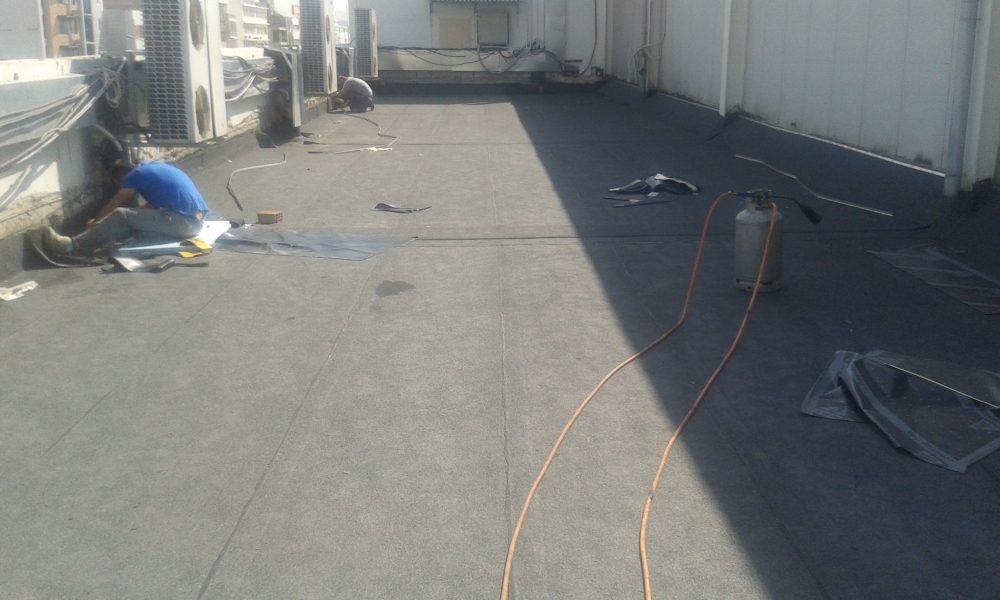 Θερμομόνωση - διαμόρφωση ρύσεων και στεγάνωση δώματος με διπλή στρώση ασφαλτικής μεμβράνης