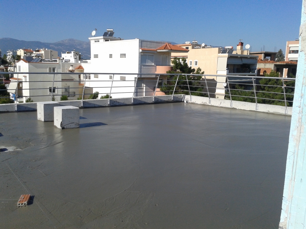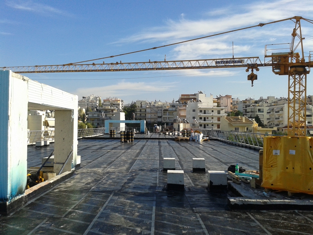 Θερμομόνωση δωμάτων με εξηλασμένη πολυστερίνη Fibran πάχους 5 cm και στεγάνωση δωμάτων με διπλή στρώση ασφαλτικής μεμβράνης Sika Bituseal