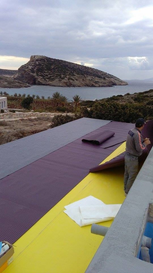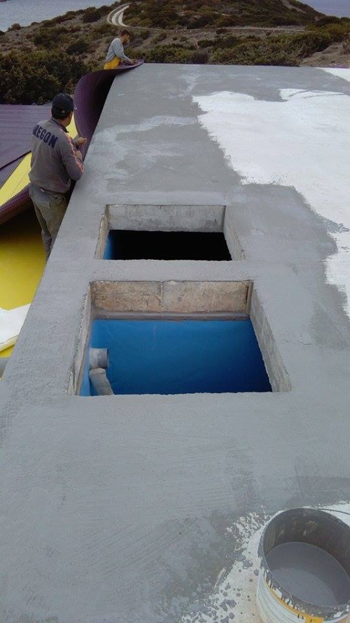 Στεγάνωση δεξαμενής ποσίμου με μεμβράνη PVC Sikaplan WT 4220-15C συνολικού εμβαδόν 600 m2 και τοιχίων υπογείου συνολικού εμβαδόν 300 m2 , κατοικίας στη Σχοινούσα