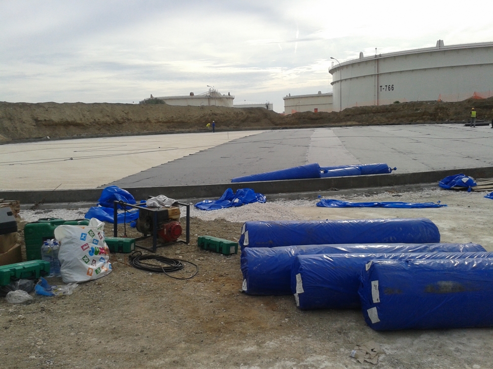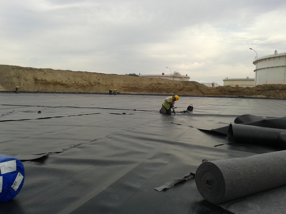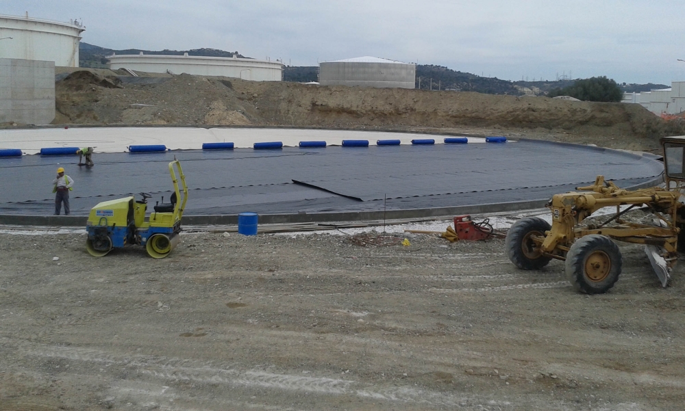 Στεγάνωση δεξαμενής στις εγκαταστάσεις της Motor Oil στους Αγ.Θεοδώρους με μεμβράνη HDPE, Kritiflex 6070, συνολικής επιφάνειας 3.050 m2