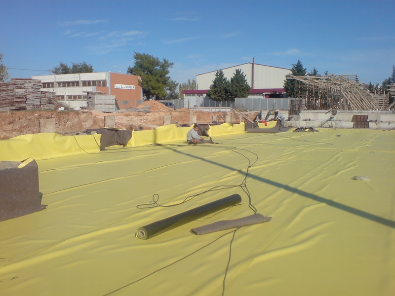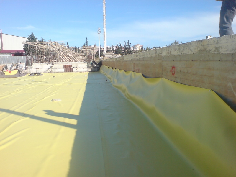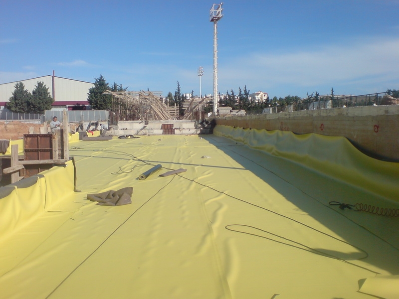 Κατασκευή στεγανολεκάνης στον χώρο των κερκίδων του Δημοτικού Σταδίου Μαρκόπουλου με μεμβράνη Sikaplan WP1100-20HL συνολικής επιφάνειας 1100 m2