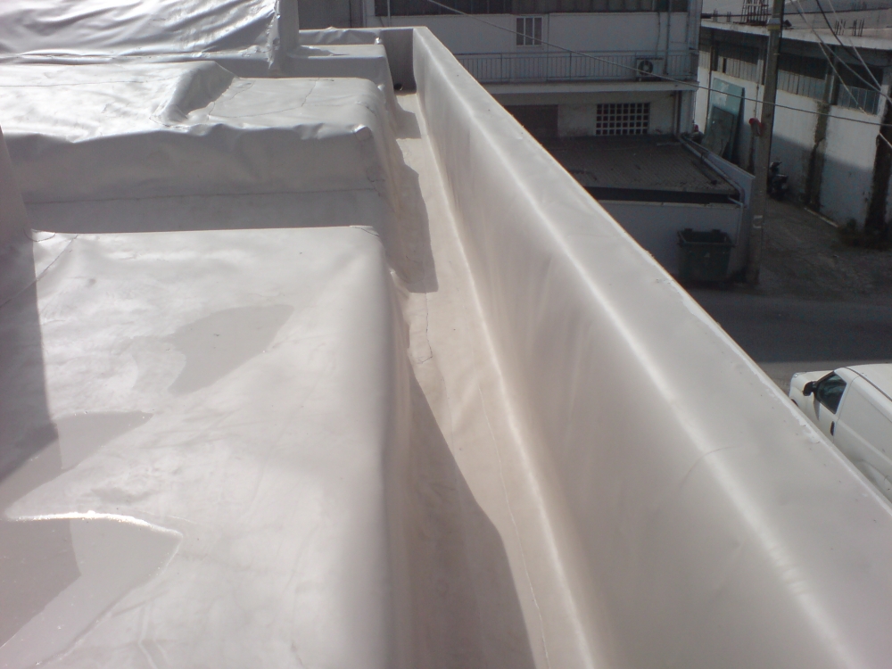 Στεγάνωση βιομηχανικού κτιρίου στον Ταύρο επιφάνειας 600 m2 με μεμβράνη πολυπροπυλενίου Sarnafil TS 77-15 μηχανικά στερεωμένη