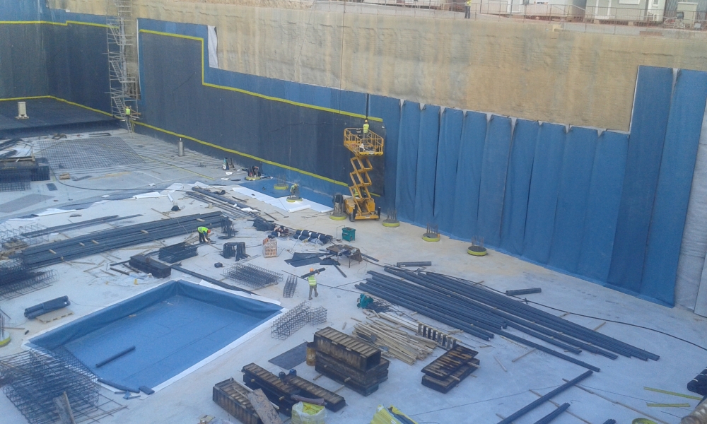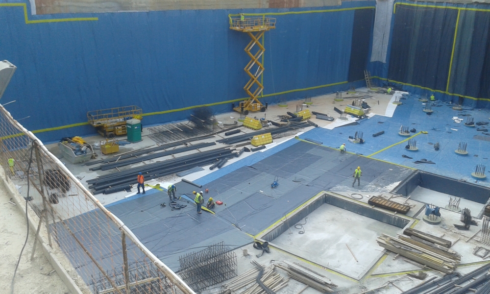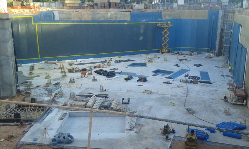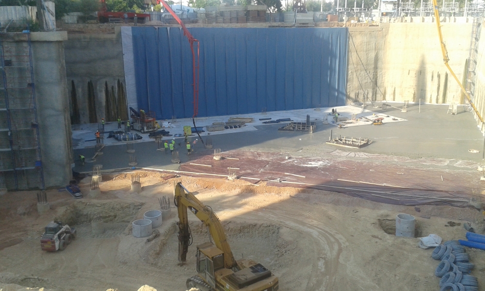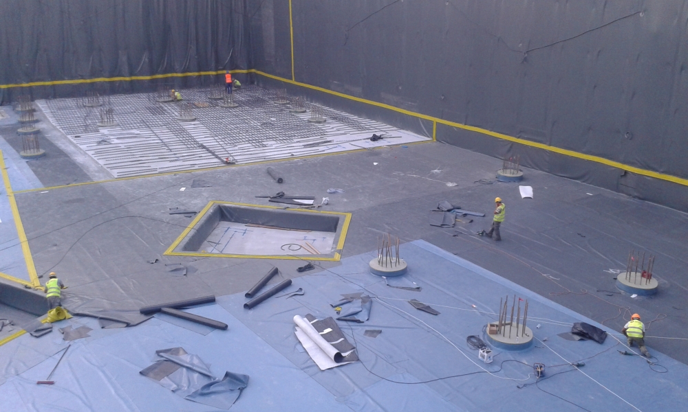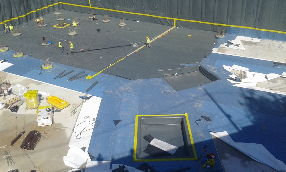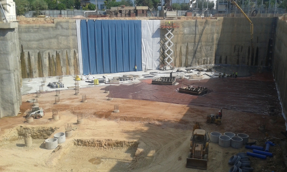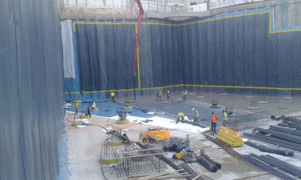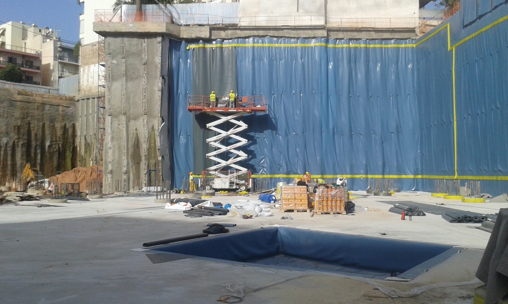 Κατασκευή στεγανολεκάνης στο έργο "Κατασκευή κτιρίου γραφείων της ΑΓΓΕΜΑΡ Α.Ε." με σύστημα διπλής μεμβράνης συνολικής επιφάνειας 11.200 m2