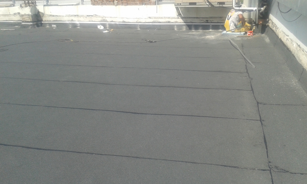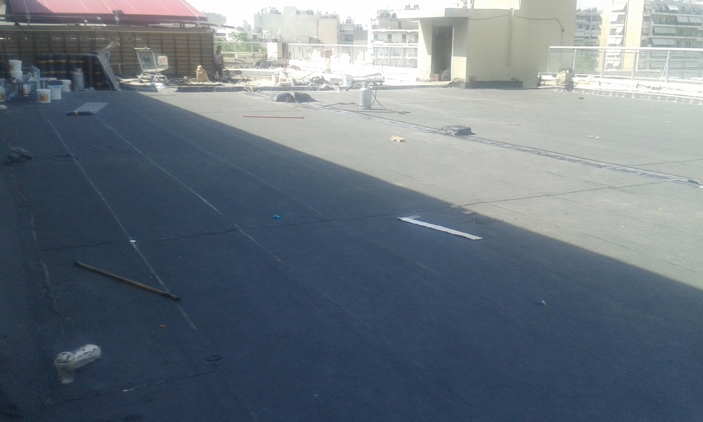 Θερμομόνωση - διαμόρφωση ρύσεων και στεγάνωση δώματος με διπλή στρώση ασφαλτικής μεμβράνης