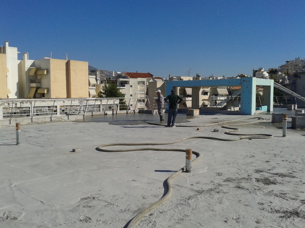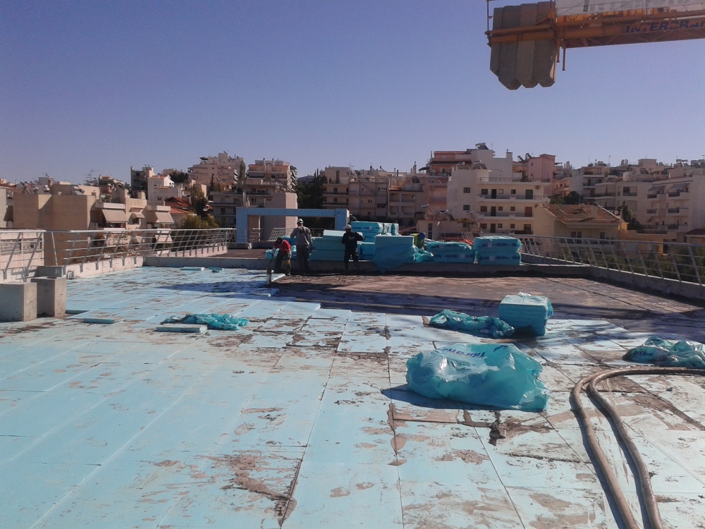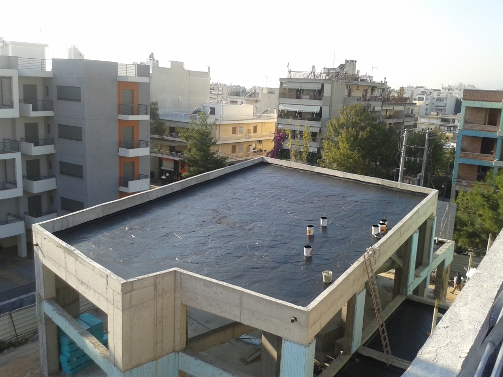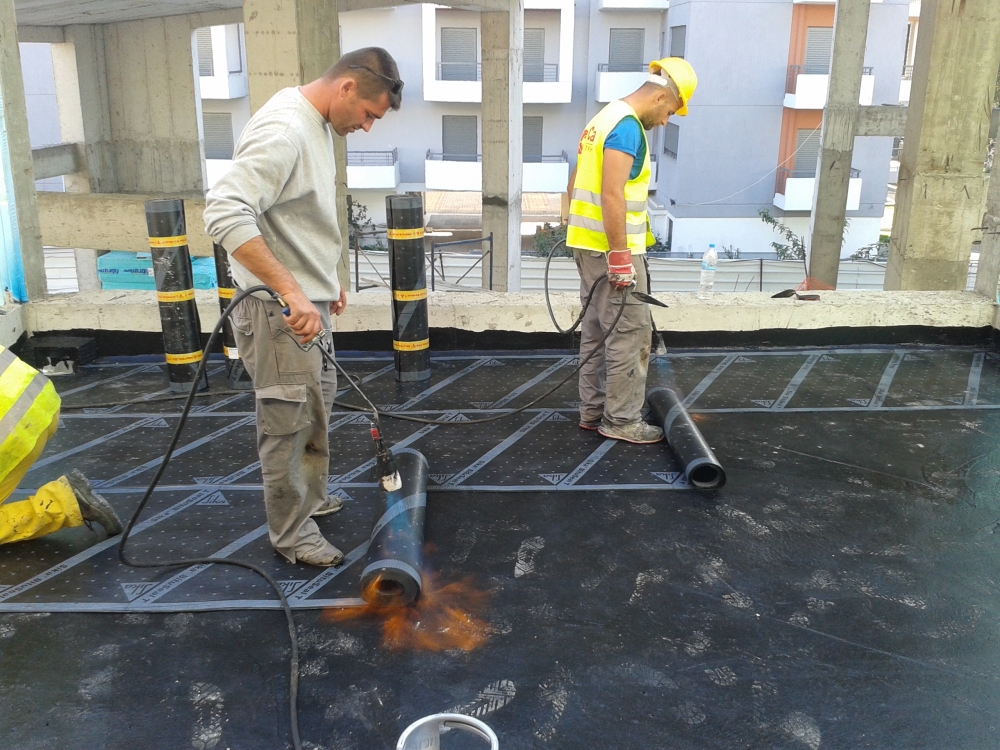 Θερμομόνωση δωμάτων με εξηλασμένη πολυστερίνη Fibran πάχους 5 cm και στεγάνωση δωμάτων με διπλή στρώση ασφαλτικής μεμβράνης Sika Bituseal