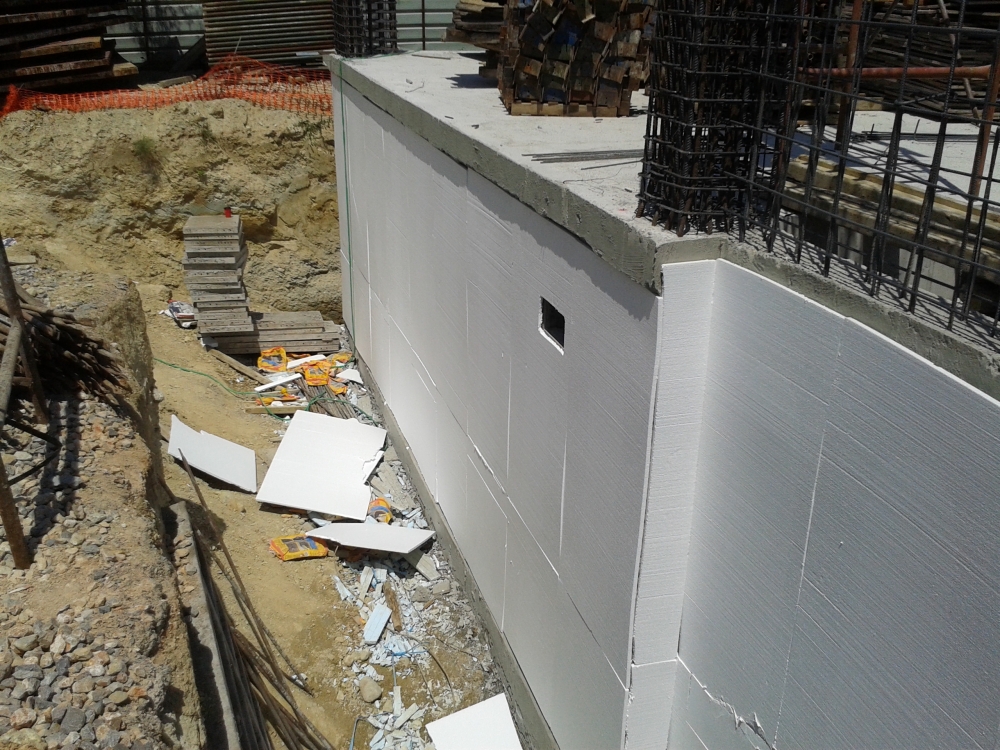 Στεγάνωση υπογείων χώρων με τσιμεντοειδές κονίαμα Sika Monoseal 101 και θερμομόνωση με πλάλες διογκωμένης πολυστερίνης πάχους 2 cm