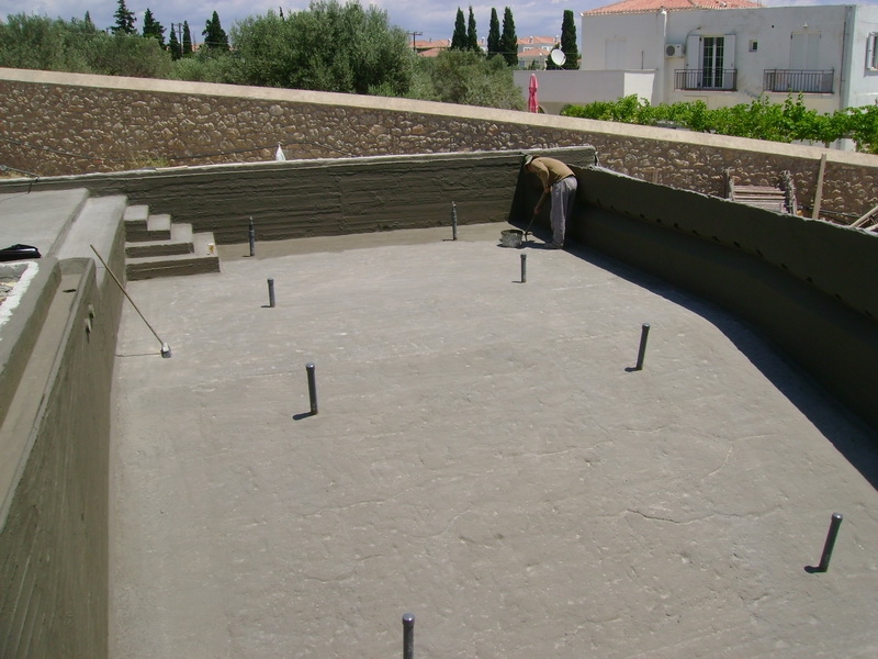 Στεγάνωση πισίνας με εύκαμπτο τσιμεντοειδές κονίαμα Sikalastic 152